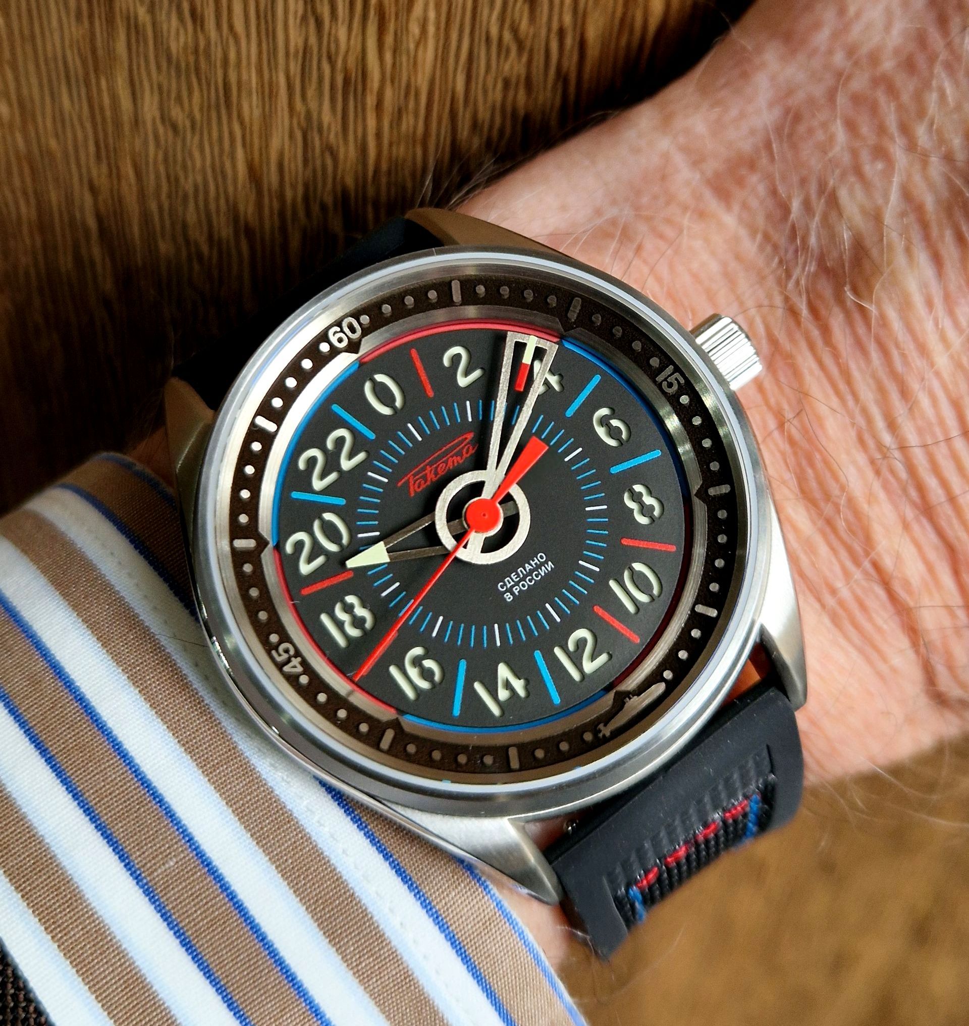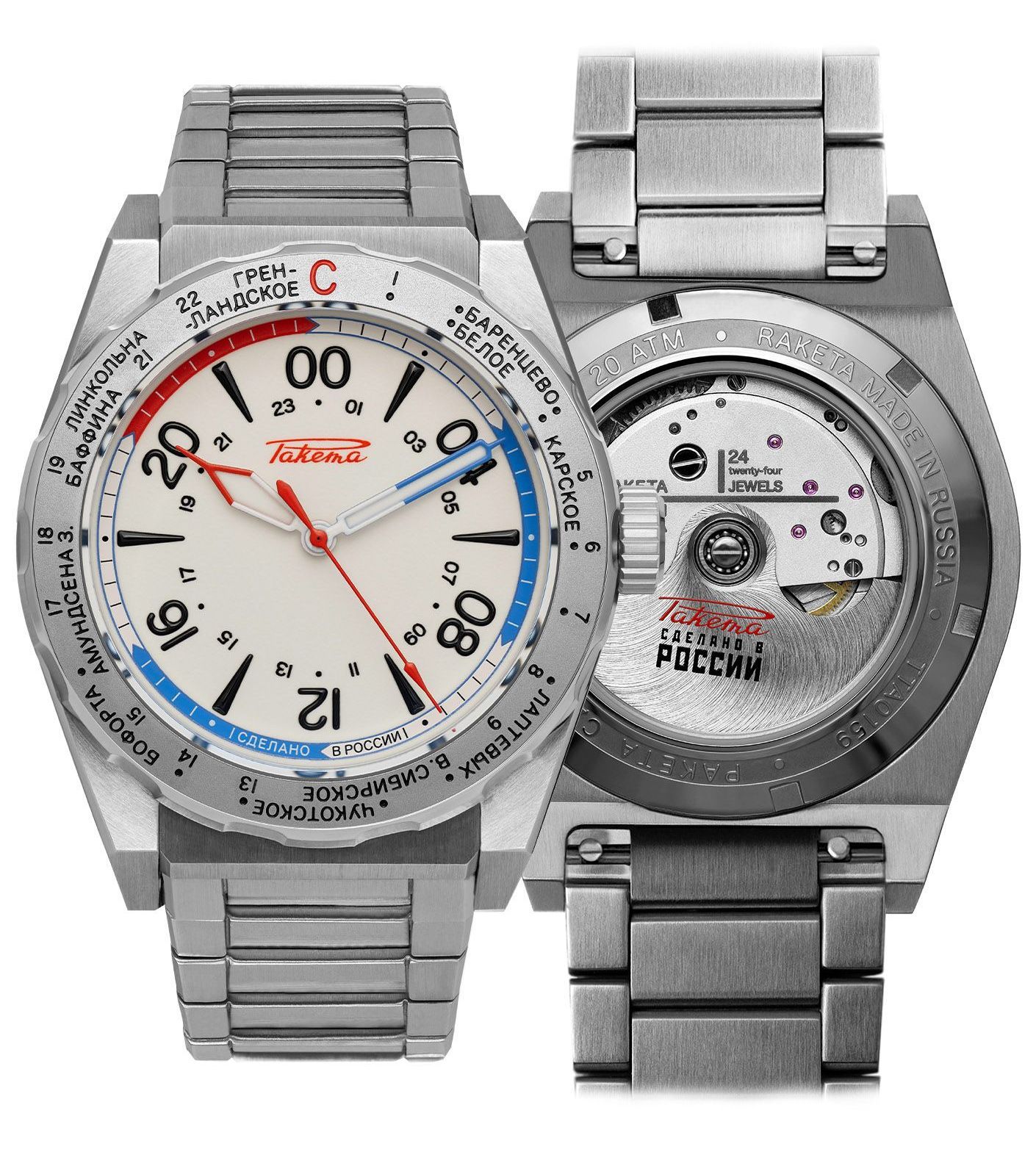 equips all watches with 24-hour display, one of Raketa's specialties.