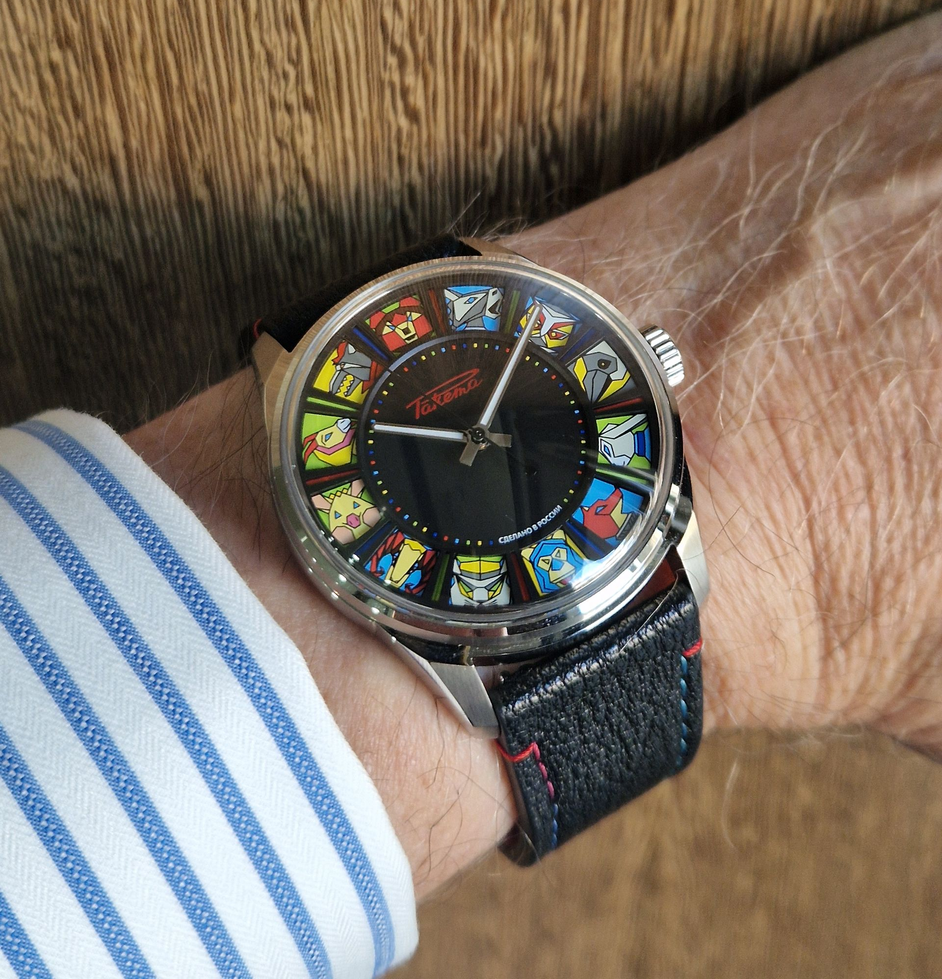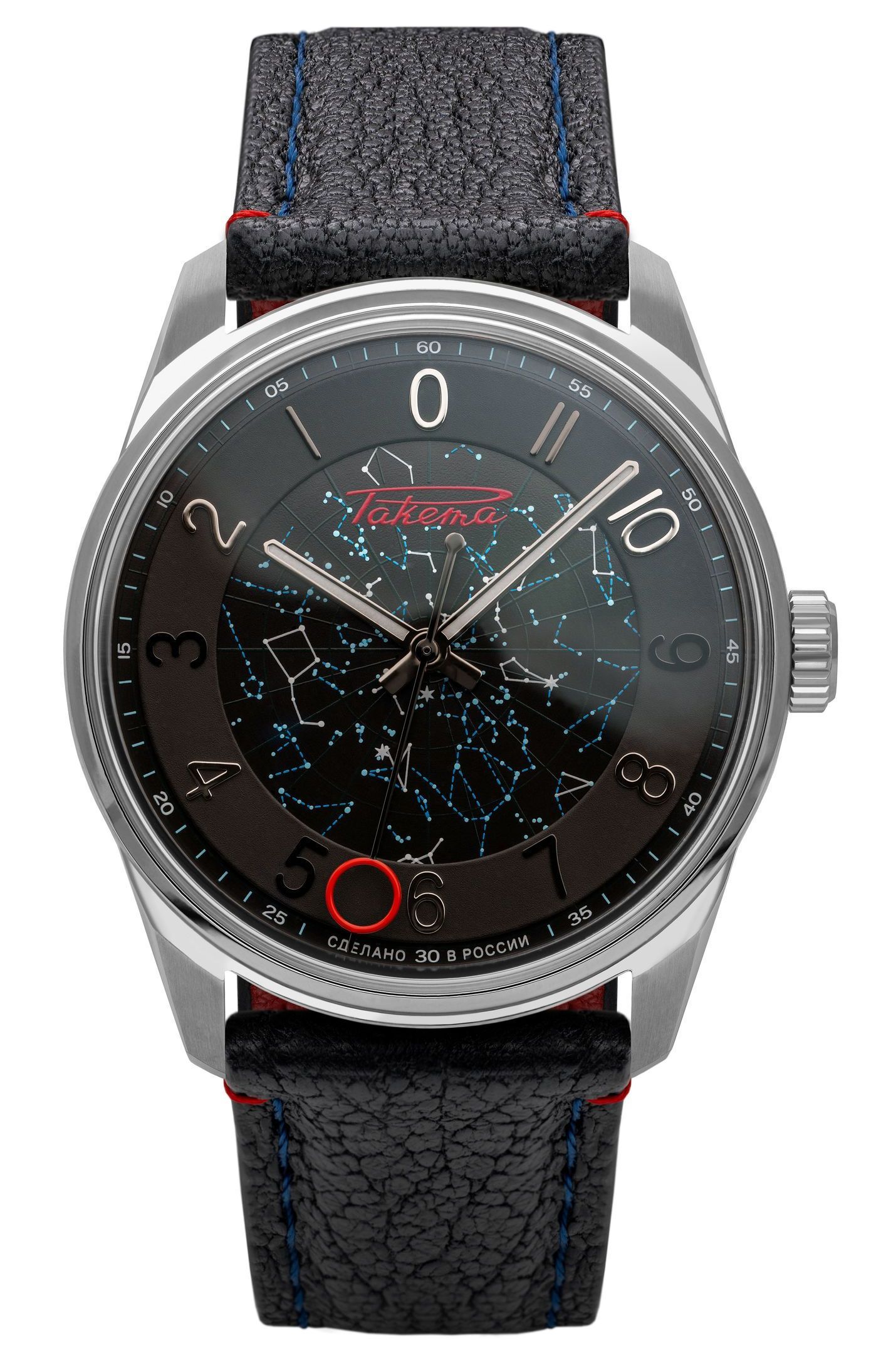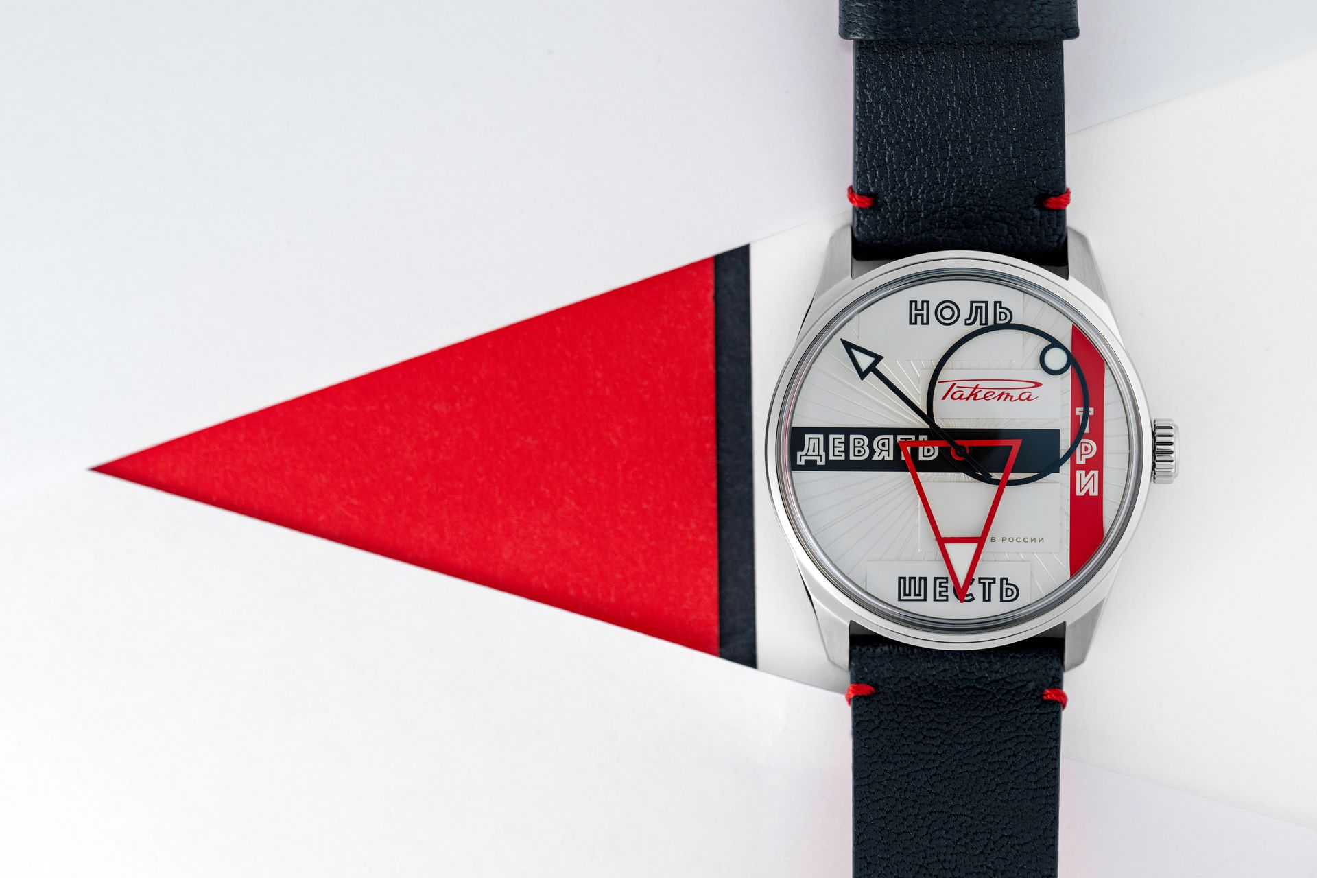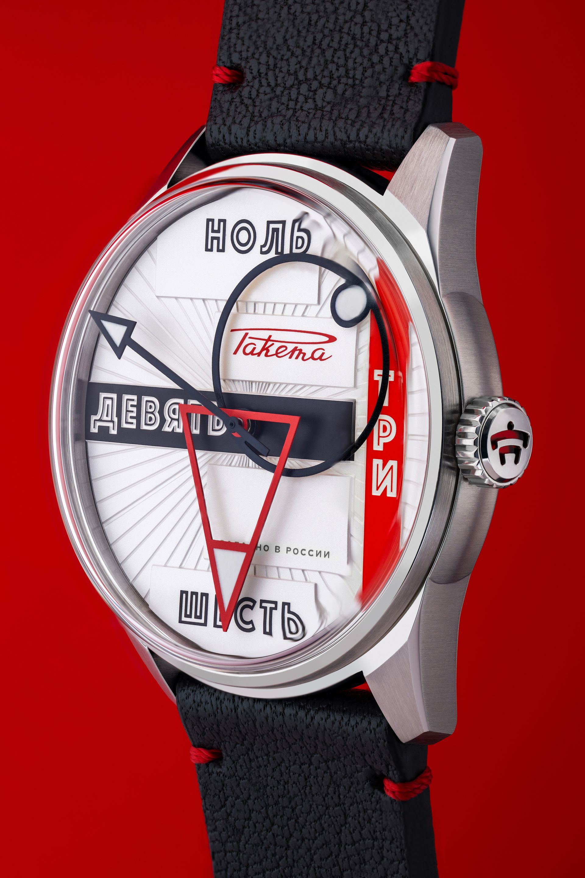 The restrained design of the Raketa Theatre watches is elegantly enhanced by three stylish accents: an avant-garde dial, multi-colored printing on the rotor, and contrasting stitching on the leather strap. These thoughtful details resonate with each other, creating a stricking balance of restraint and distinctiveness.