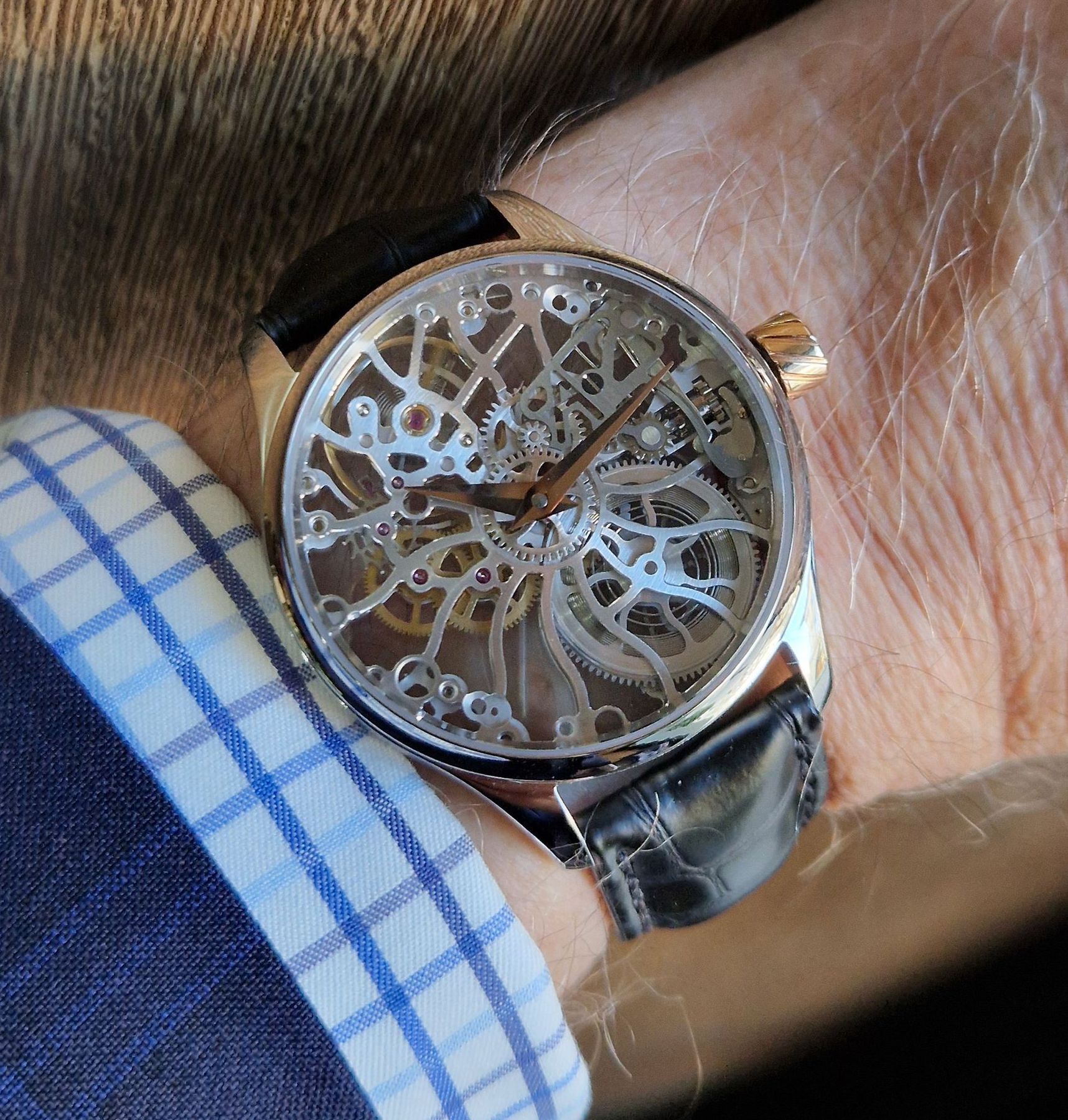 Tous les cadrans faits à la main sont réalisés par son épouse, l’artiste Dominique Arpa-Cirpka, qui utilise des techniques uniques qu’elle aime garder secrètes.
