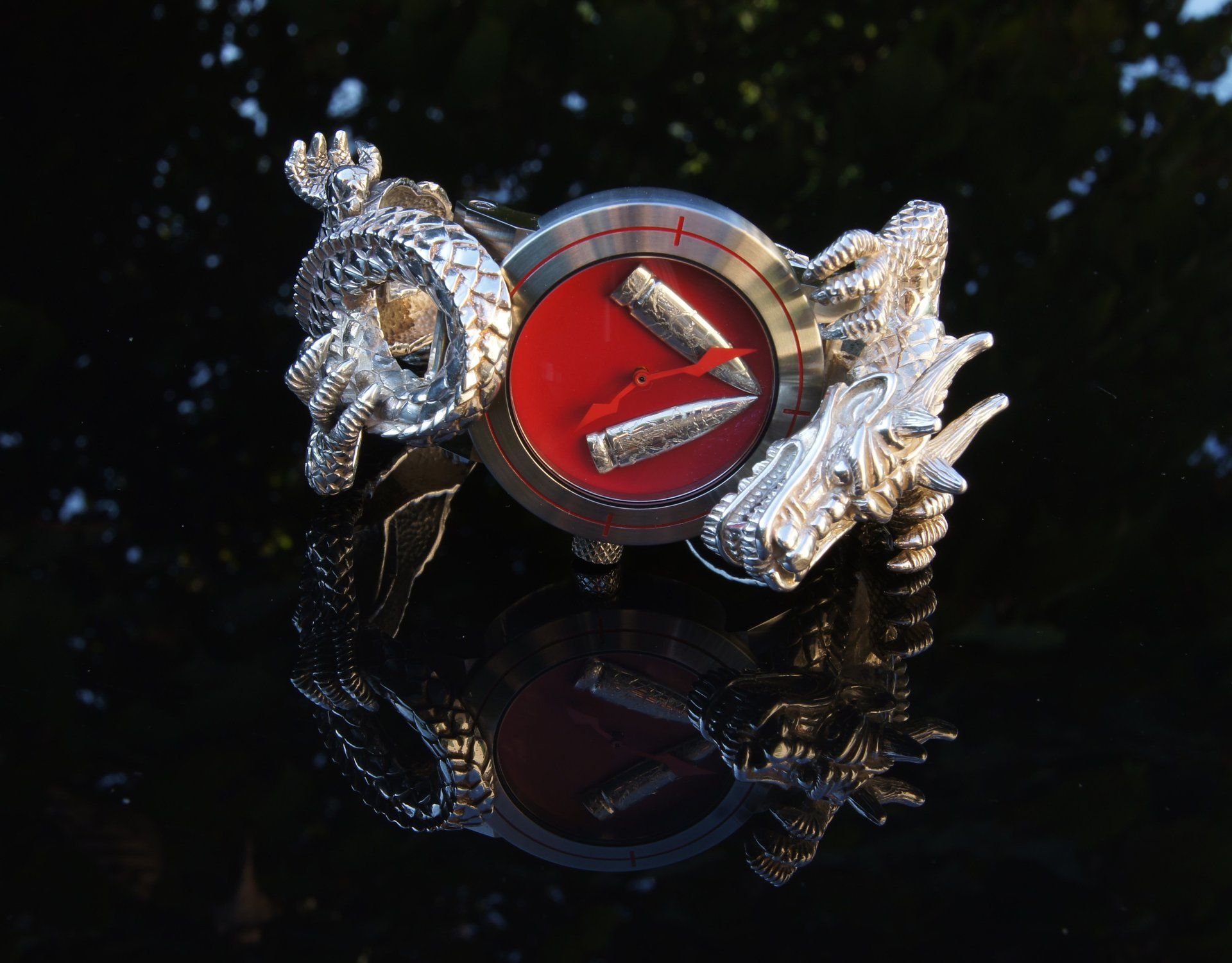 Cadran en émail rouge véritable, aiguilles bombées