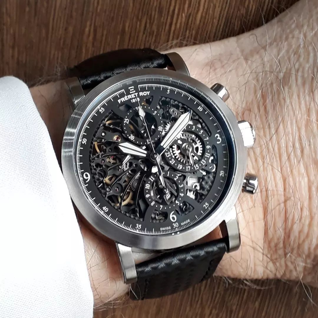 As Fréret-Roy 1818 watches are equipped with components such as movements, dials and hands produced in Switzerland, we would like to draw your attention to the fact that the significant rise in the value of the Swiss franc against the euro has led to a continuous increase in the price of our components over the last few years, as the value of the euro has continued to fall against the Swiss franc.