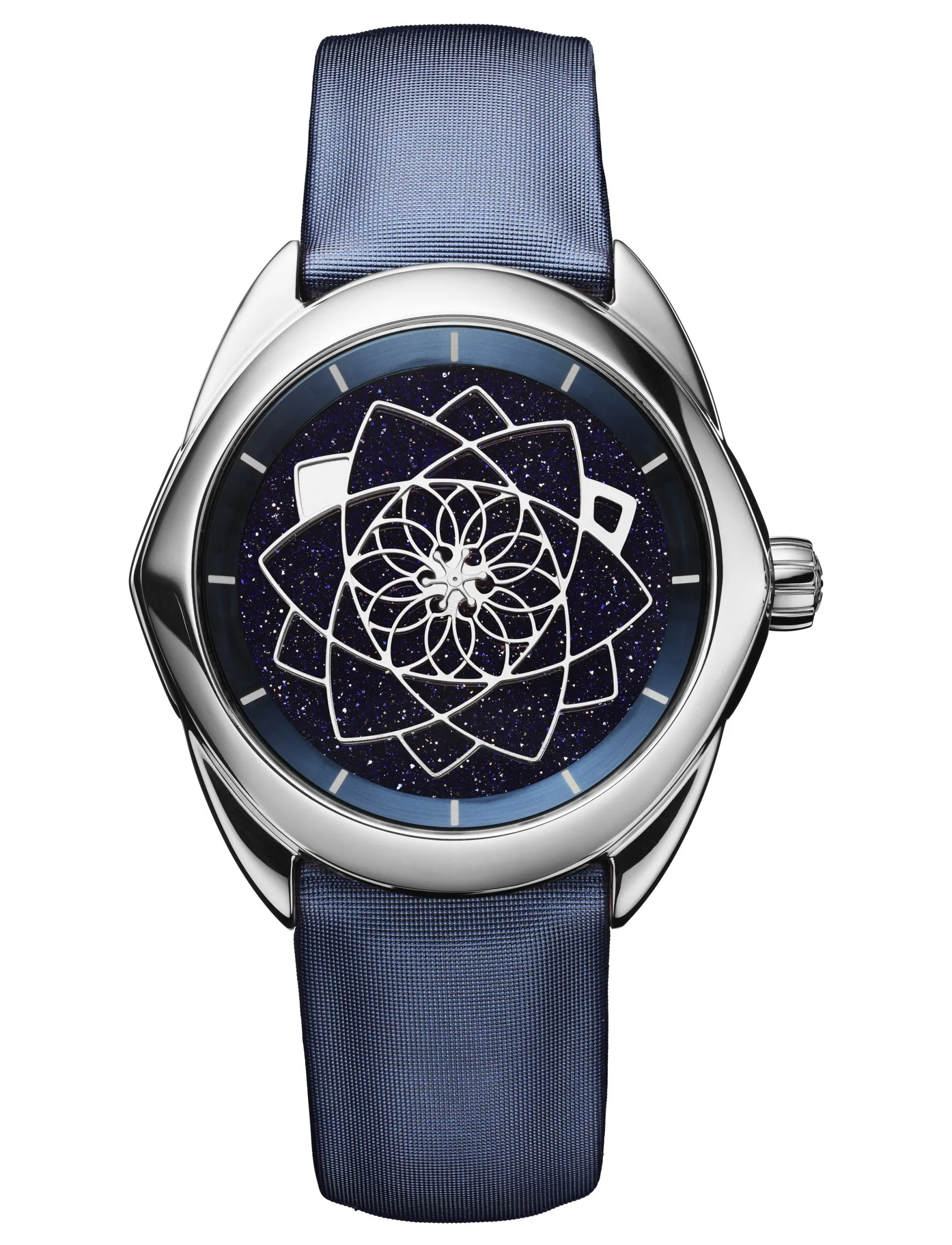 The watches are produced in Switzerland with the highest quality materials, the cases are made of titanium or titanium covered with rose gold, the dials are made of natural stones such as onyx and aventurine. A historic movement, the ETA 2776 caliber, created in 1969 and whose production was stopped in 1982, equips the various Muse models. Muse engineers have reworked several hundred kits, carefully kept for decades by a collector and equipped it with a 21,600-vibration (3Hz) oscillator in order to favor the power reserve which is at least 48 hours. Adorned with black rhodium, its finishes are unique: circular ribs, diamond-cut angles and a sunlit oscillating weight whose engraving recalls the brand's logo. This revisited movement has been named Caliber MUSE “MU 01” and equips the Men's and Women's models in the collection.
