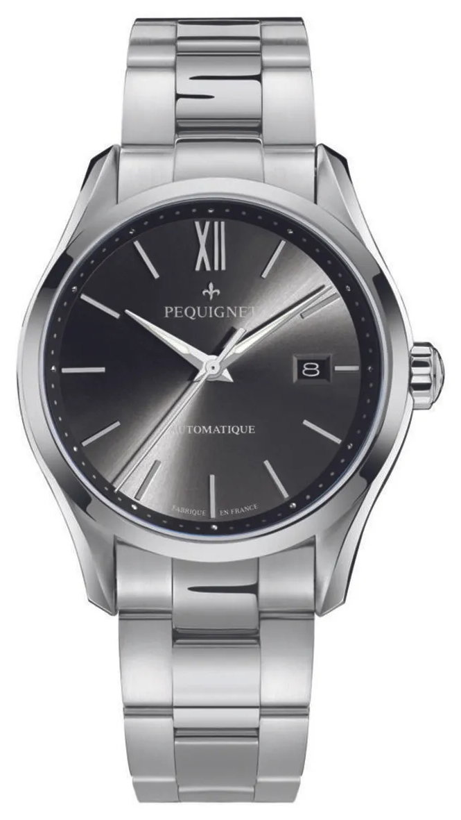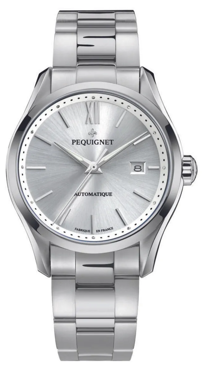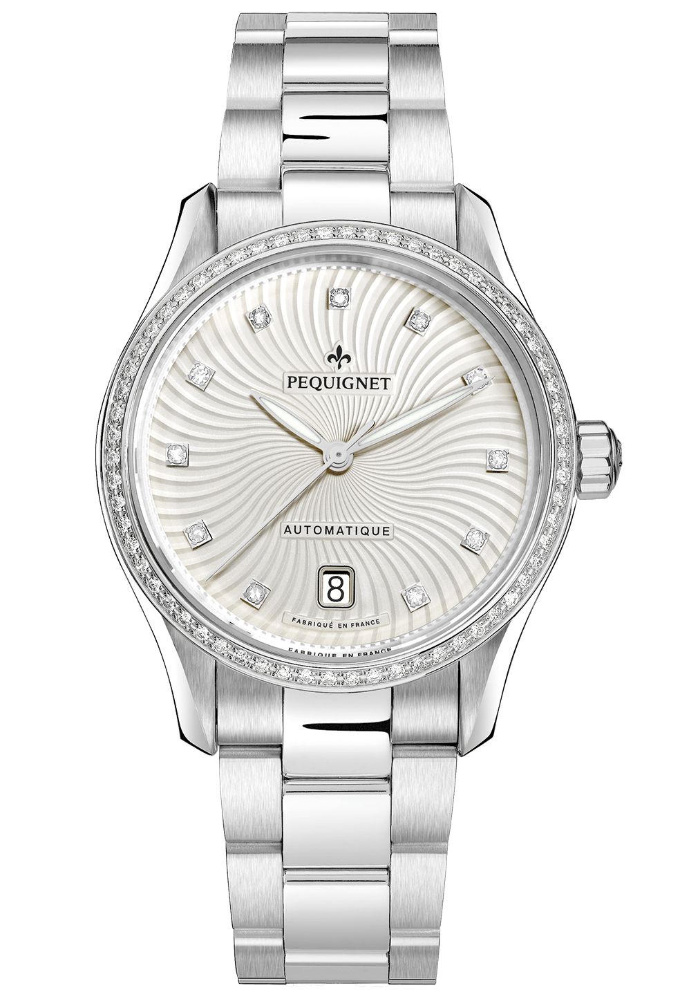 With its timeless lines, the Pequignet Attitude Acier is a modern watch that can be worn every day. Available with a choice of three dials, silver, grey or sunburst white, its contained diameter of 39 mm gives it an elegant and distinguished appearance. Particular attention has been paid to the proportions and quality of execution to offer a remarkable visual rendering. The Pequignet Attitude Acier is powered by the Calibre Initial, the latest Manufacture movement designed by Pequignet. It has a patented instantaneous date jump and winding system. A great deal of work has been put into the finishes, such as its superb openworked oscillating weight in relief visible on the back of the watch. This exclusive caliber combines technicality, precision and reliability. Developed and assembled entirely at the Manufacture, this latest creation meets the expectations of both those looking for an exceptional first watch and the most discerning collectors.