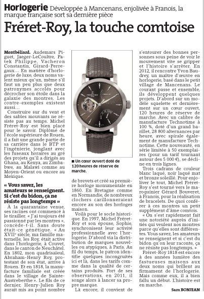 I invite you to discover the nice article that has just been published about me, the Fréret-Roy shop and our watch brand Fréret-Roy 1818 !