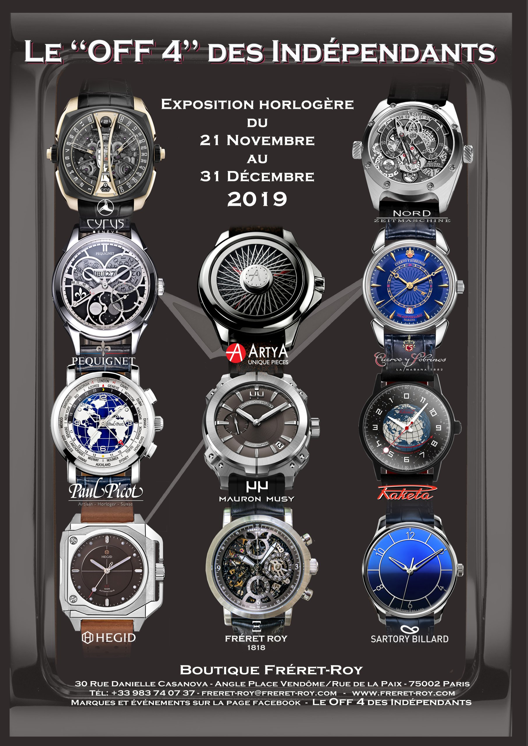 This visual, faithful to the spirit of our publications of the past years, has been taken up by the journalist Hervé Gallet - whom I thank - in the magazine: https://www.lepoint.fr/montres/une-exposition-d-horlogers-independants-a-paris-30-11-2020-2403218_2648.php#xtor=CS2-238