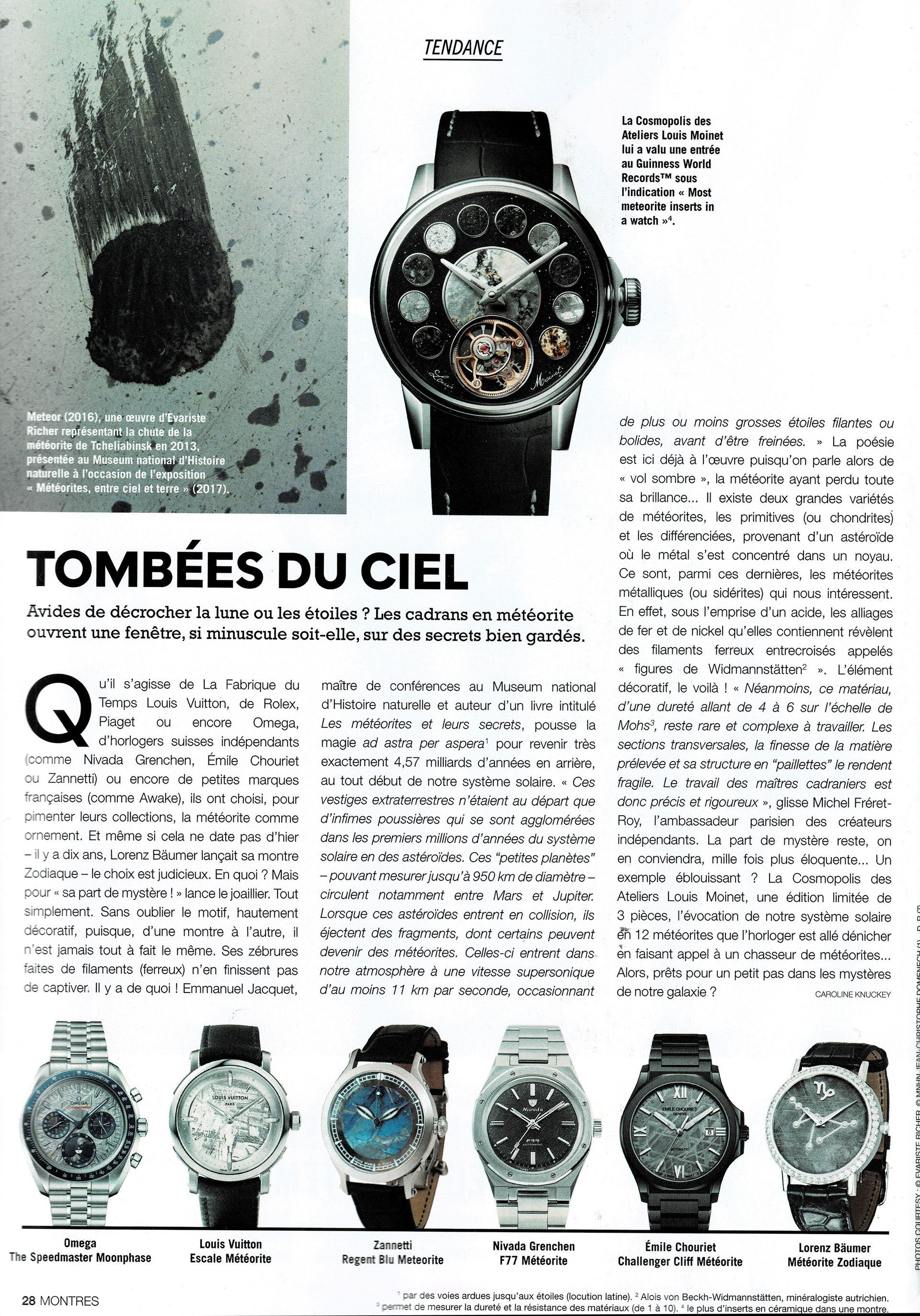 Article “Tombées du ciel”, meteorites, on page 28, with:
