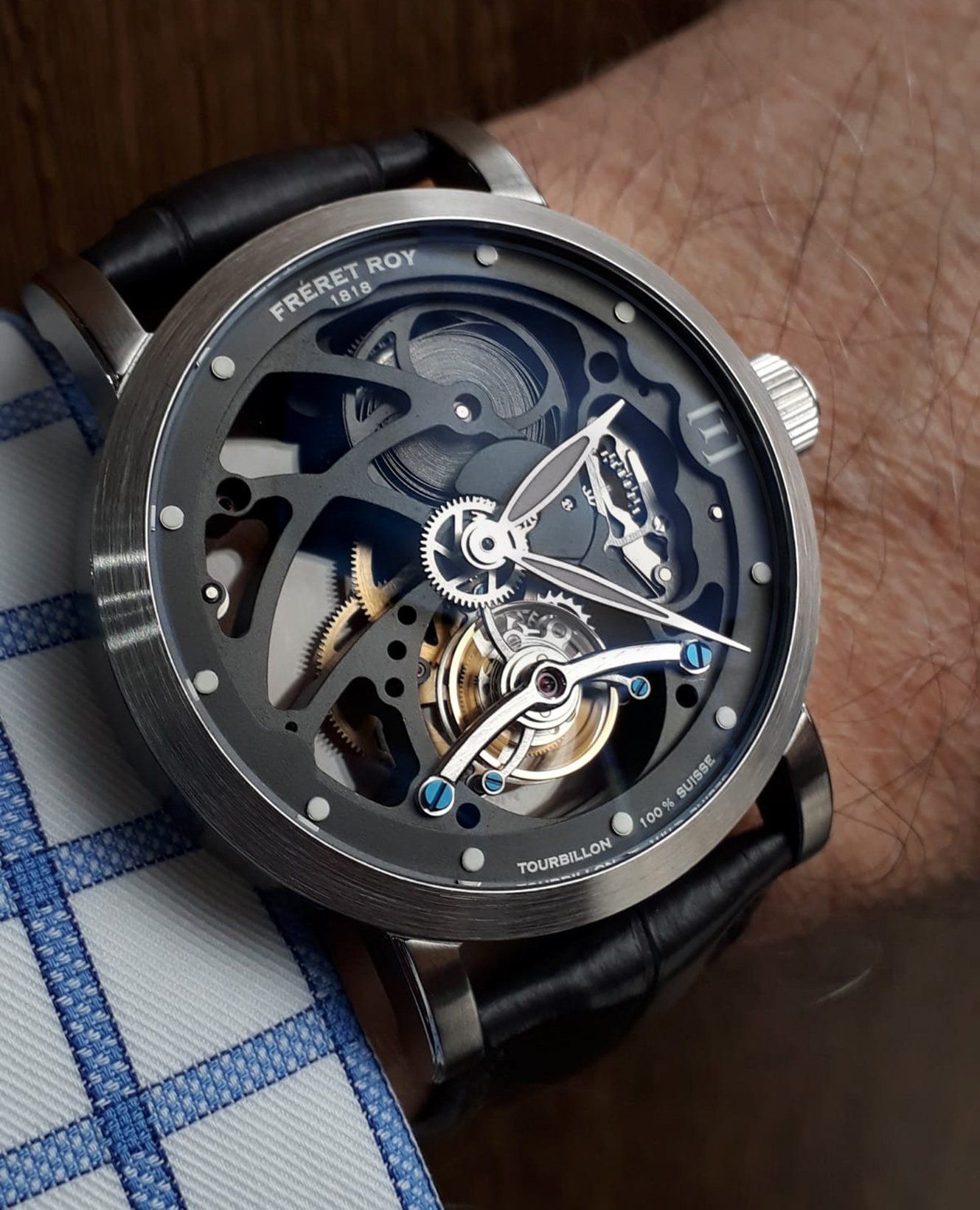 It is the convergence of the talents of these independent watchmakers and myself - as a modest watch passionated entrepreneur - and of course my wife Sophie and our children who all participated to the project, which allowed the birth of the first 100% Swiss skeleton tourbillon of an independent French brand, whose family origin originates from the 18th century in Switzerland in the Canton of Neuchâtel, which is the reason why we wished to endow this watch with a Swiss caliber . For the history of the brand I invite you to the first page of this site and to the page "History & Museum"...