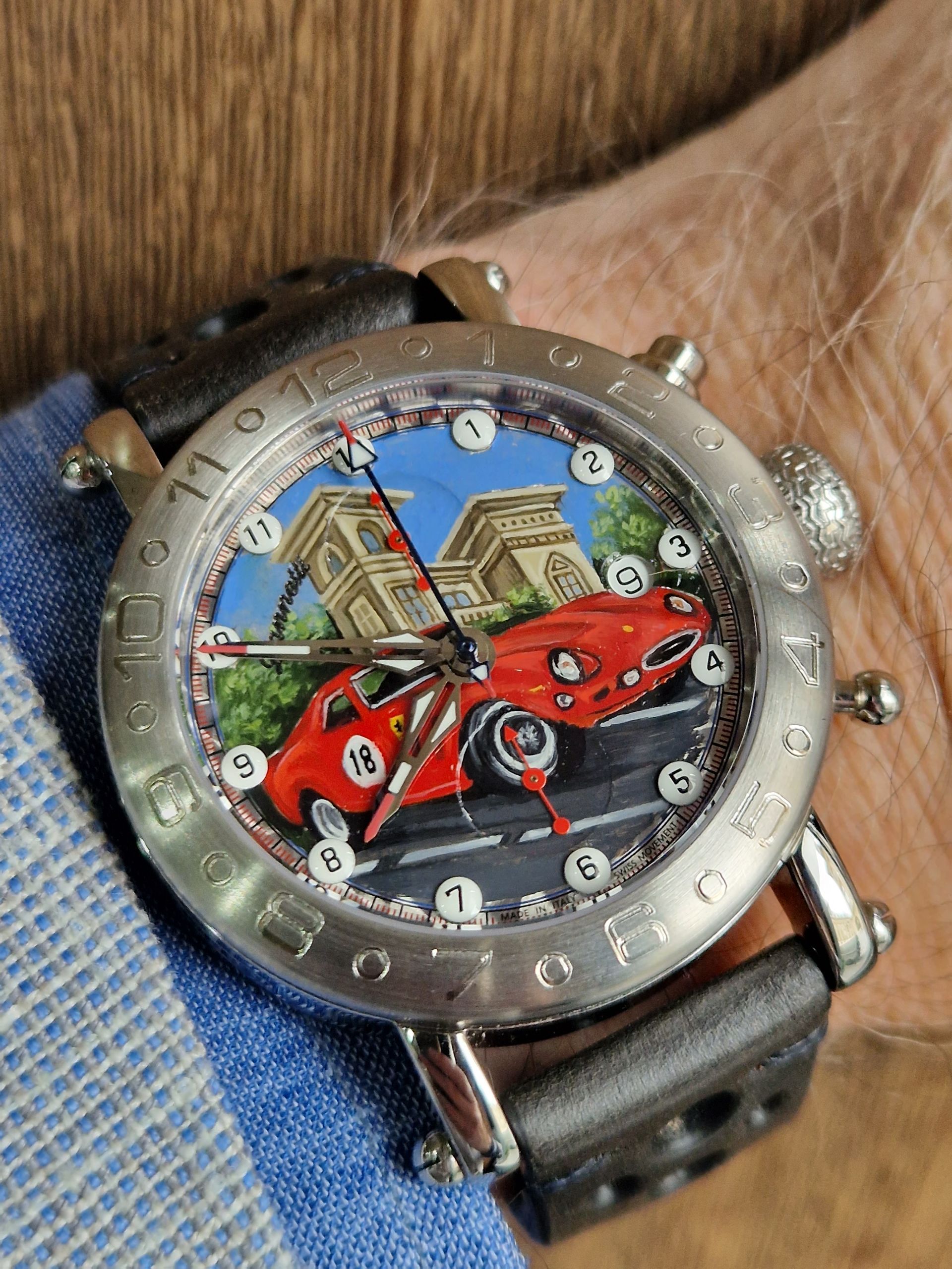 And of course, any car model - your car, for example - can be reproduced on the dial, painted and manufactured for you.
