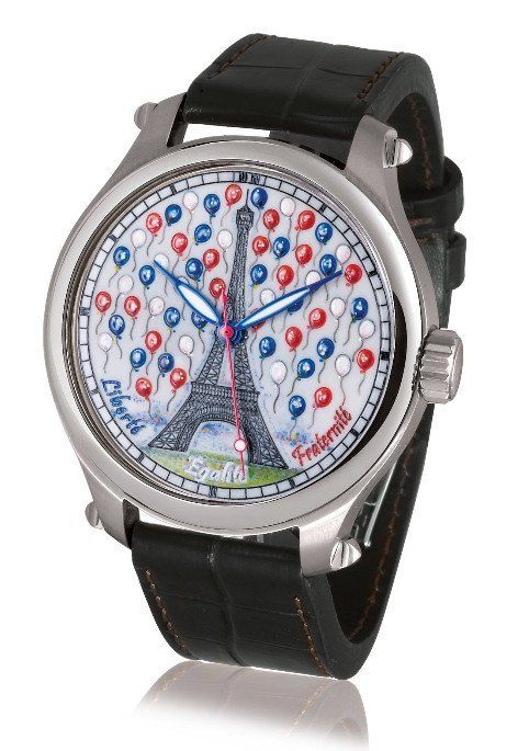 Refined and hand-engraved, the dials are the distinctive signs of the models in the Regent collection. Imagination, dreams and adventures are represented by the suggestive designs which have been carefully engraved on a Corozo (vegetable ivory) base, then using translucent shades of red, blue, black, then pink, gray and light blue.