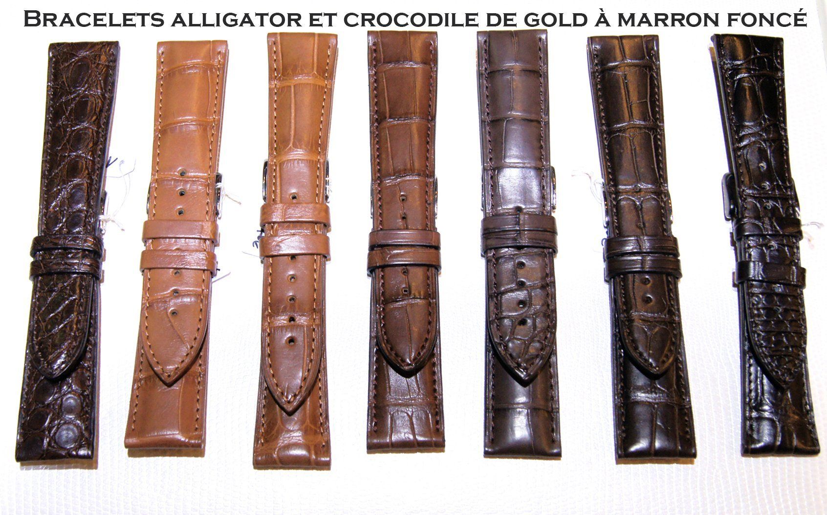 Alligator: noir, gris, bleu marine, bleu roi, marron foncé, marron moyen , marron clair ou gold...