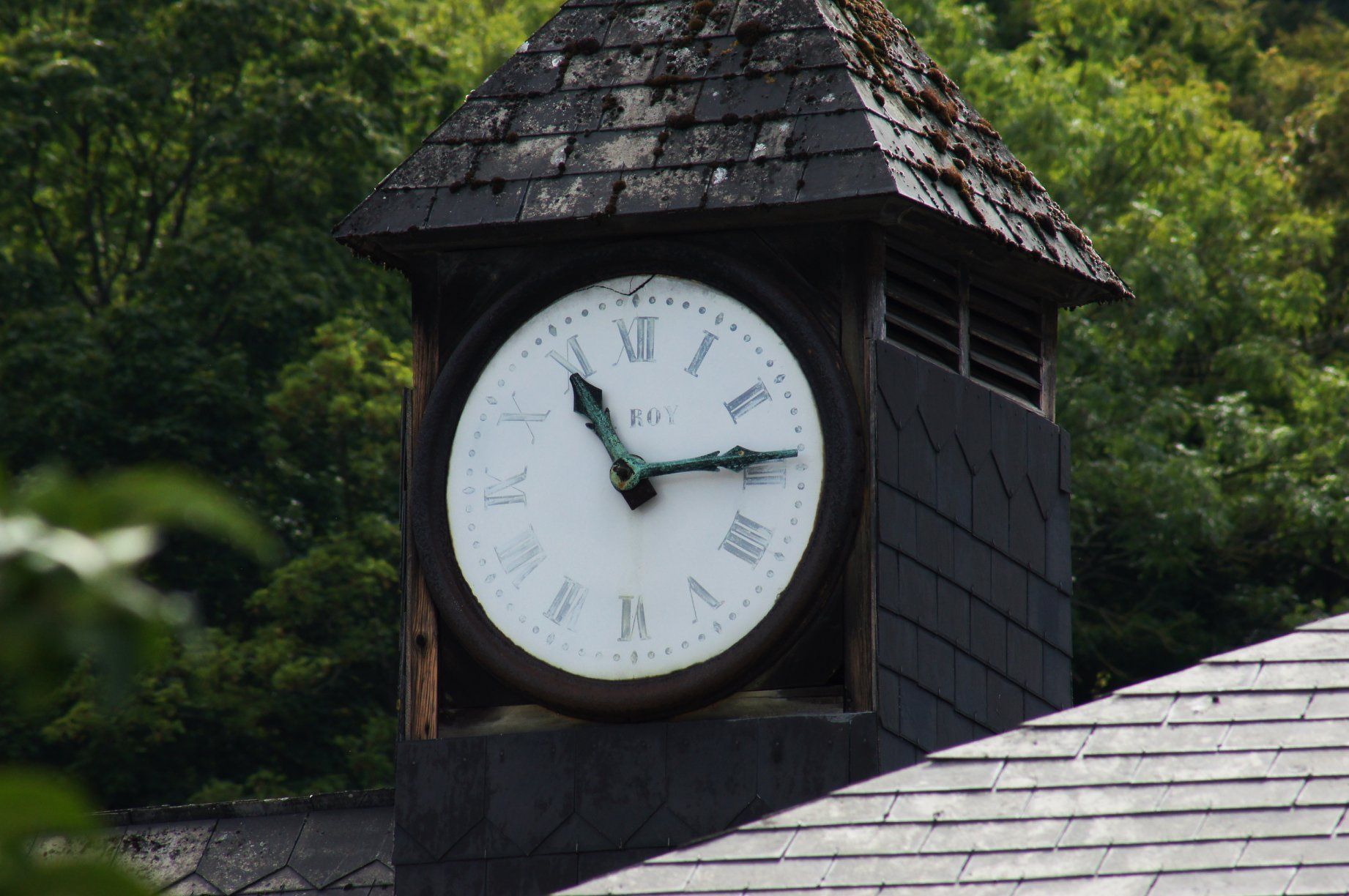 Dans une petite rue du village bien connu de La Bouille, sur les bords rive gauche de la Seine en aval de Rouen, se trouve ce clocheton privé arborant une horloge H. ROY, sur le toit d'une maison privée... Quand nous y sommes passés, il n'y avait personne pour nous ouvrir et nous parler de cette horloge. Nous tenterons de nouveau notre chance à notre prochaine visite dans ce charmant village.