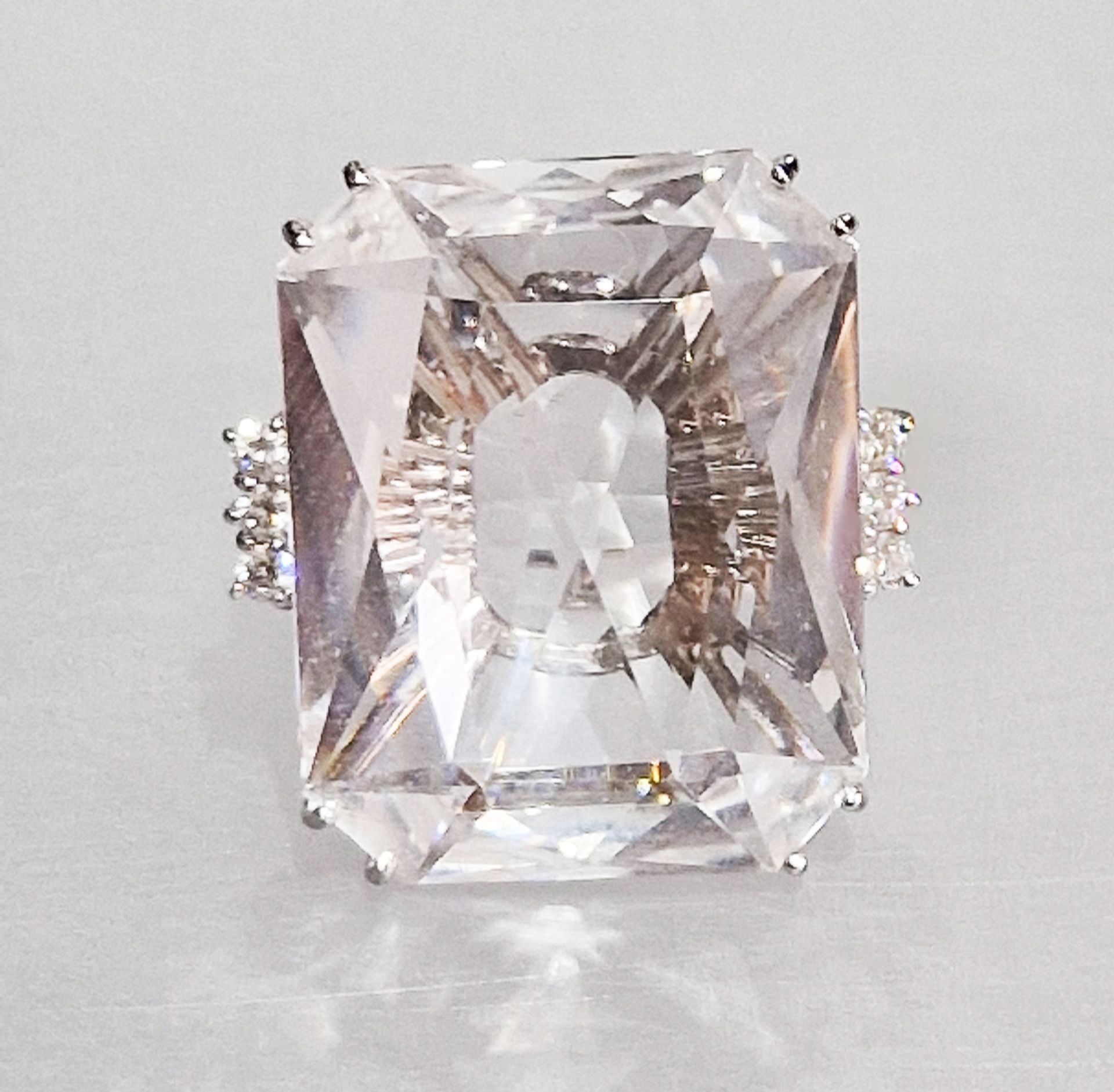 Kunzite rose pâle de taille radiant de 17,72 cts environ , brillants TW-VS 0,68 ct, Or blanc 800/1000èmes- 18,85gr. Pièce unique.