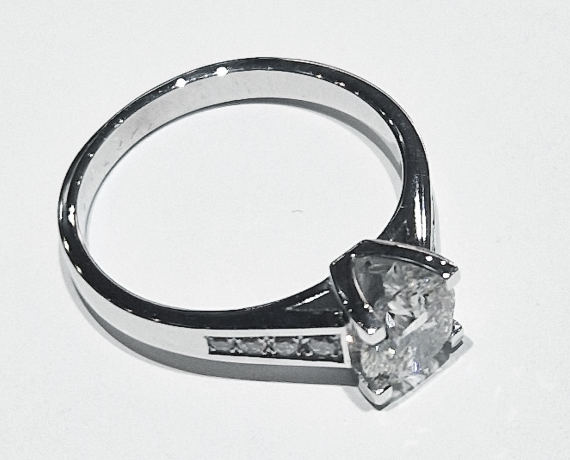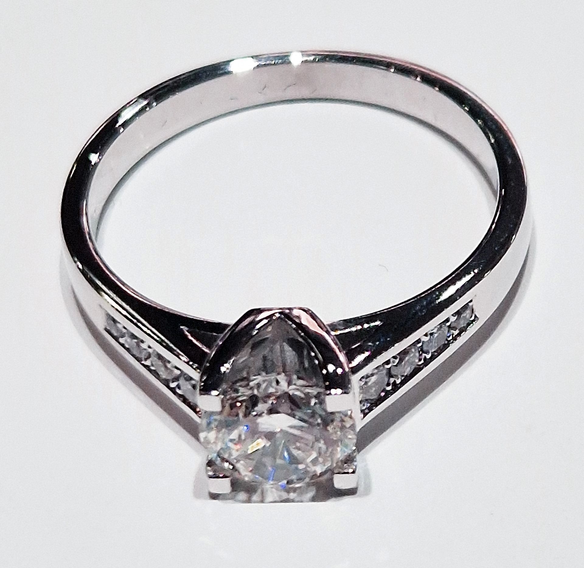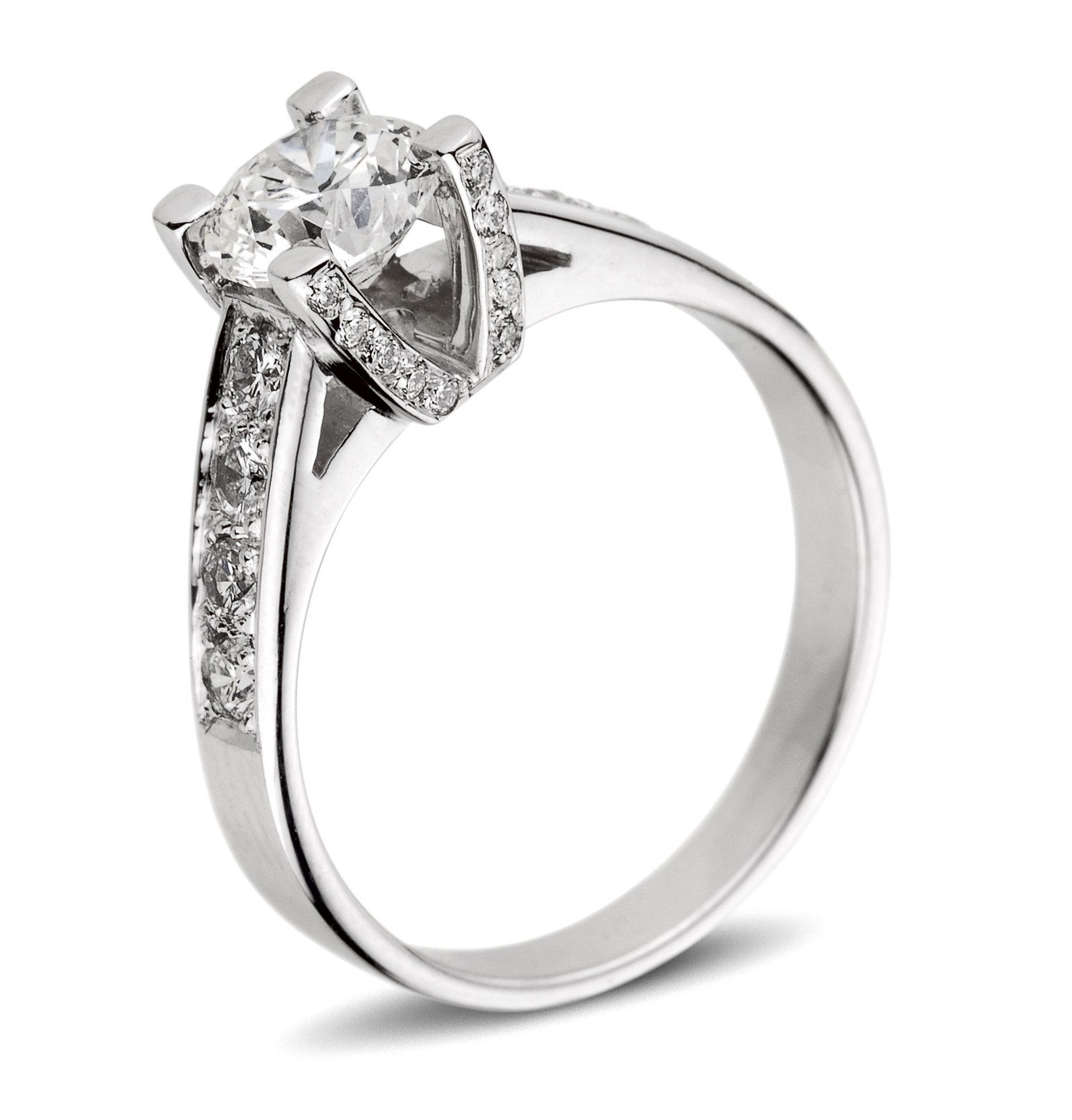 8) Bague Barcelonnette, en or blanc 18kt. Diamant central 0,50ct G VS, serti sur le corps de bague 0,10 ct, G VS. Vendue.