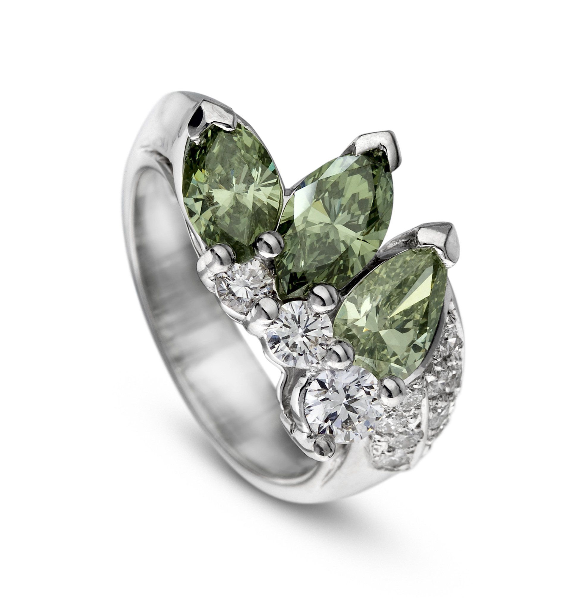1) Bague moderne et asymétrique en or blanc 18kt, 0,88ct de pavage G-VS. Vendue.