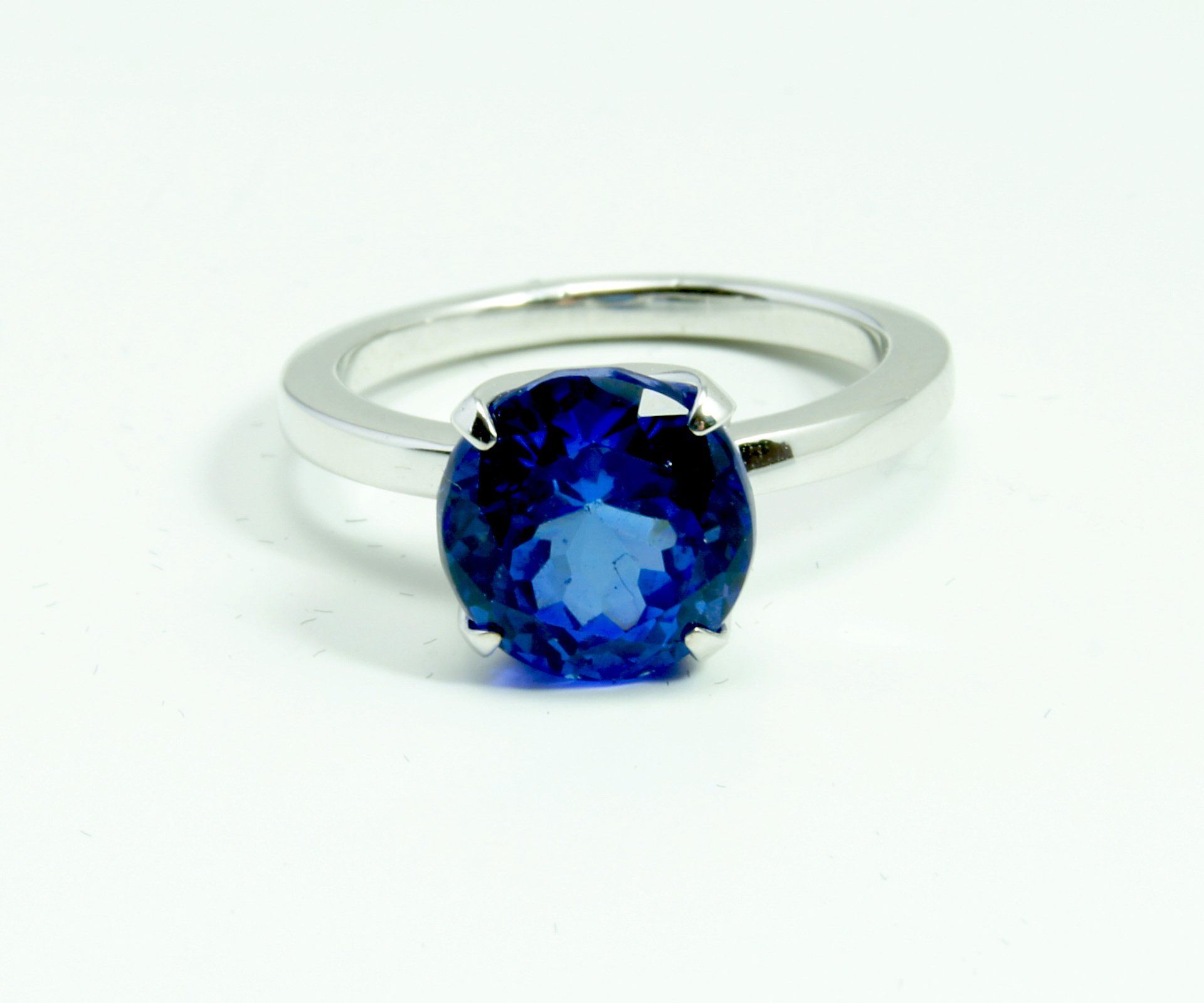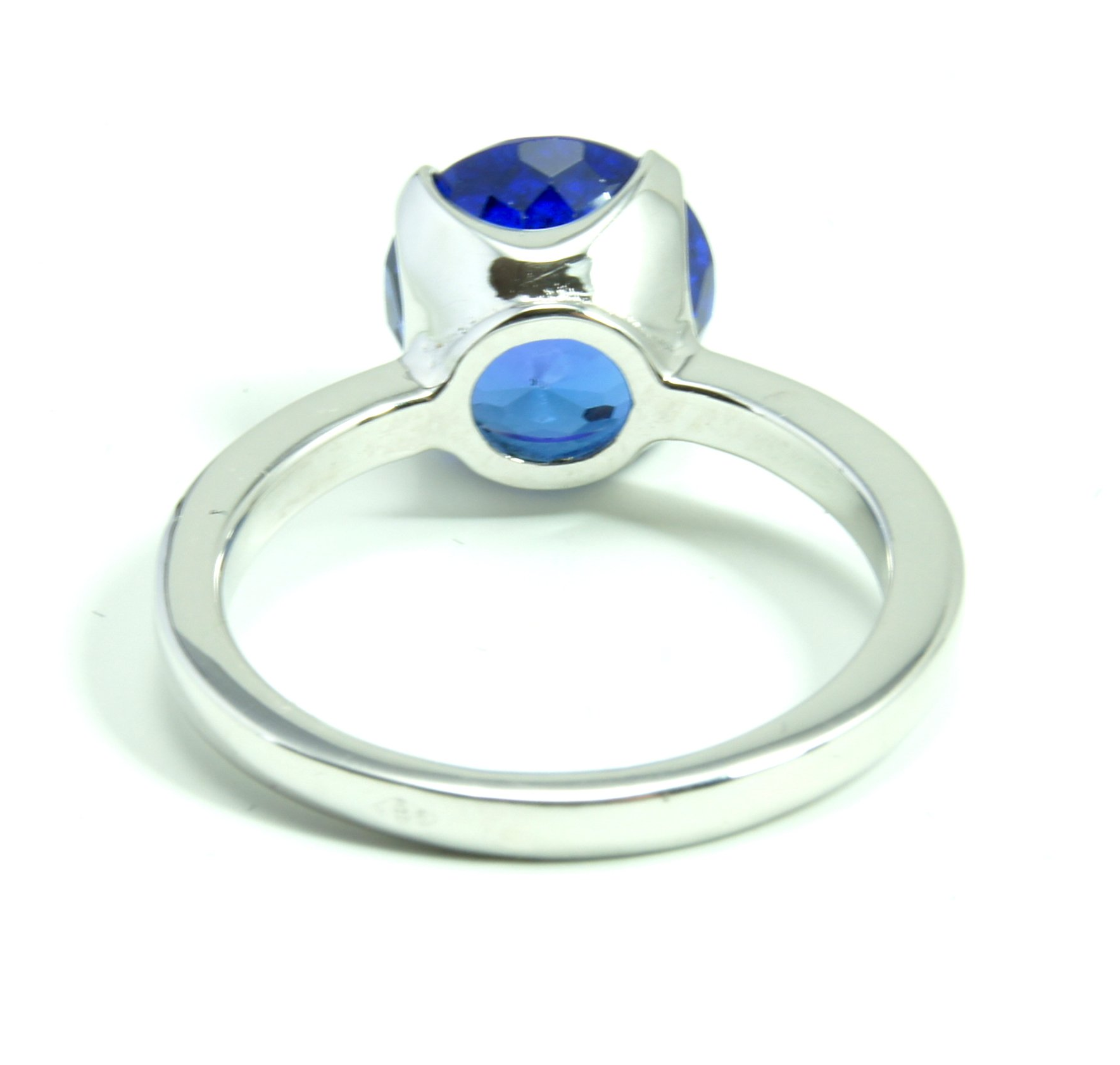 Bague "Barcelonnette® Ronde Solo" Tanzanite bleue 4 cts En or blanc 18kt, tanzanite, ronde, très lumineuse et intense. Monture fait main à Paris. Vendue. Sur commande