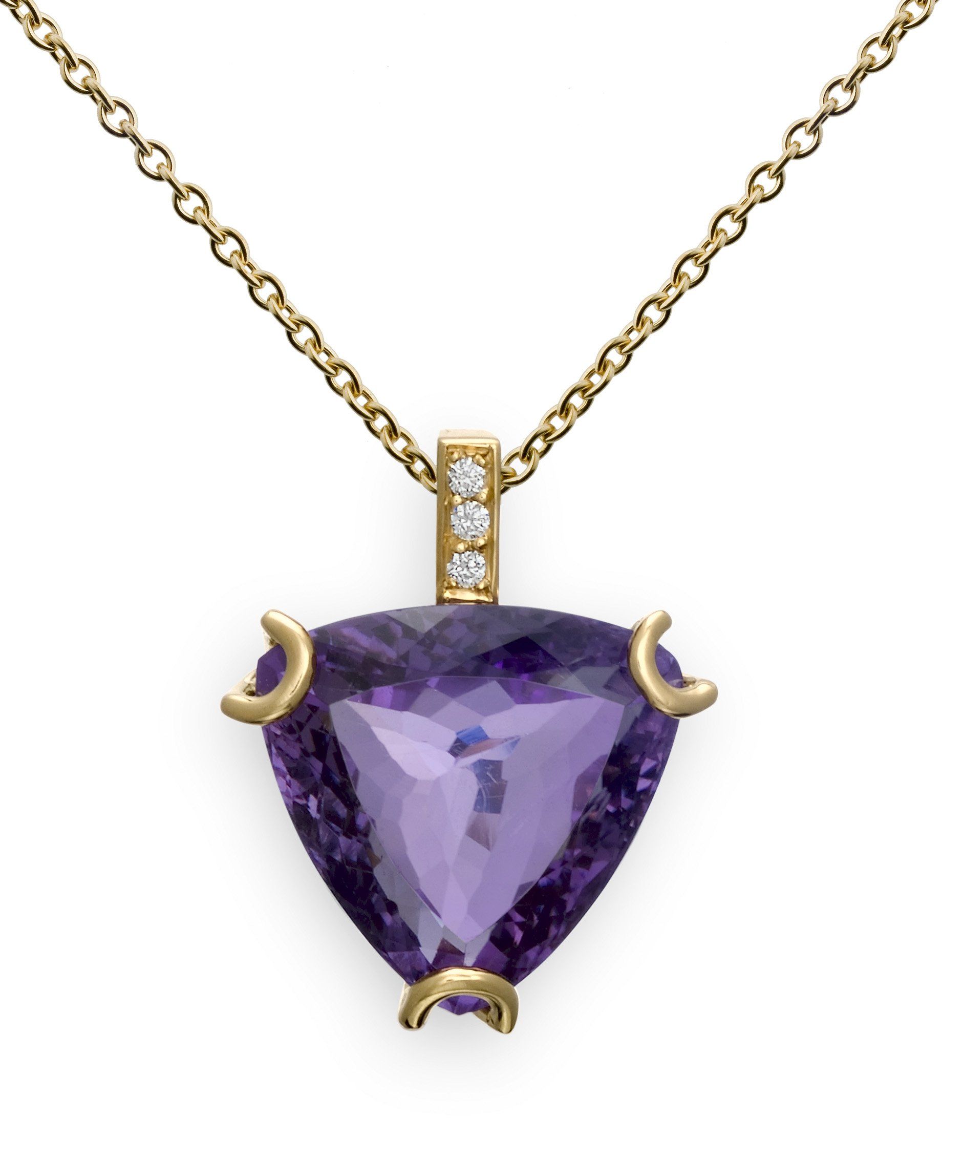Pendentif en or jaune 18kt, améthyste de 13,10ct et diamants, de forme triangulaire, sur un montage fait main en or blanc 18kt .