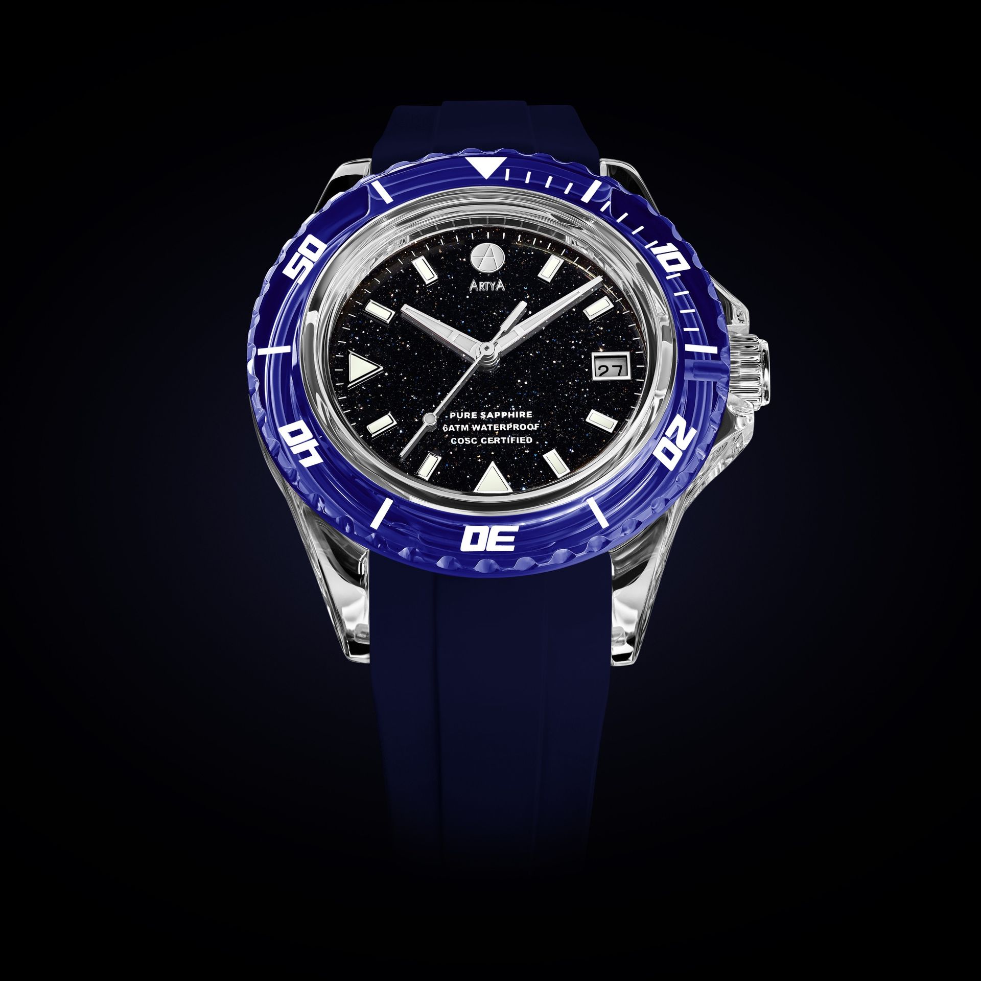 Son boîtier recouvert de PVD noir, ses aiguilles noir et blanc très contrastées, ses grands chiffres, son revêtement Super-LumiNova et le revêtement antireflet double face du verre saphir rappellent le tableau de bord numérique du Su-57. Le boîtier est dote d’une couronne vissée qui assure une étanchéité jusqu'à 200 mètres.