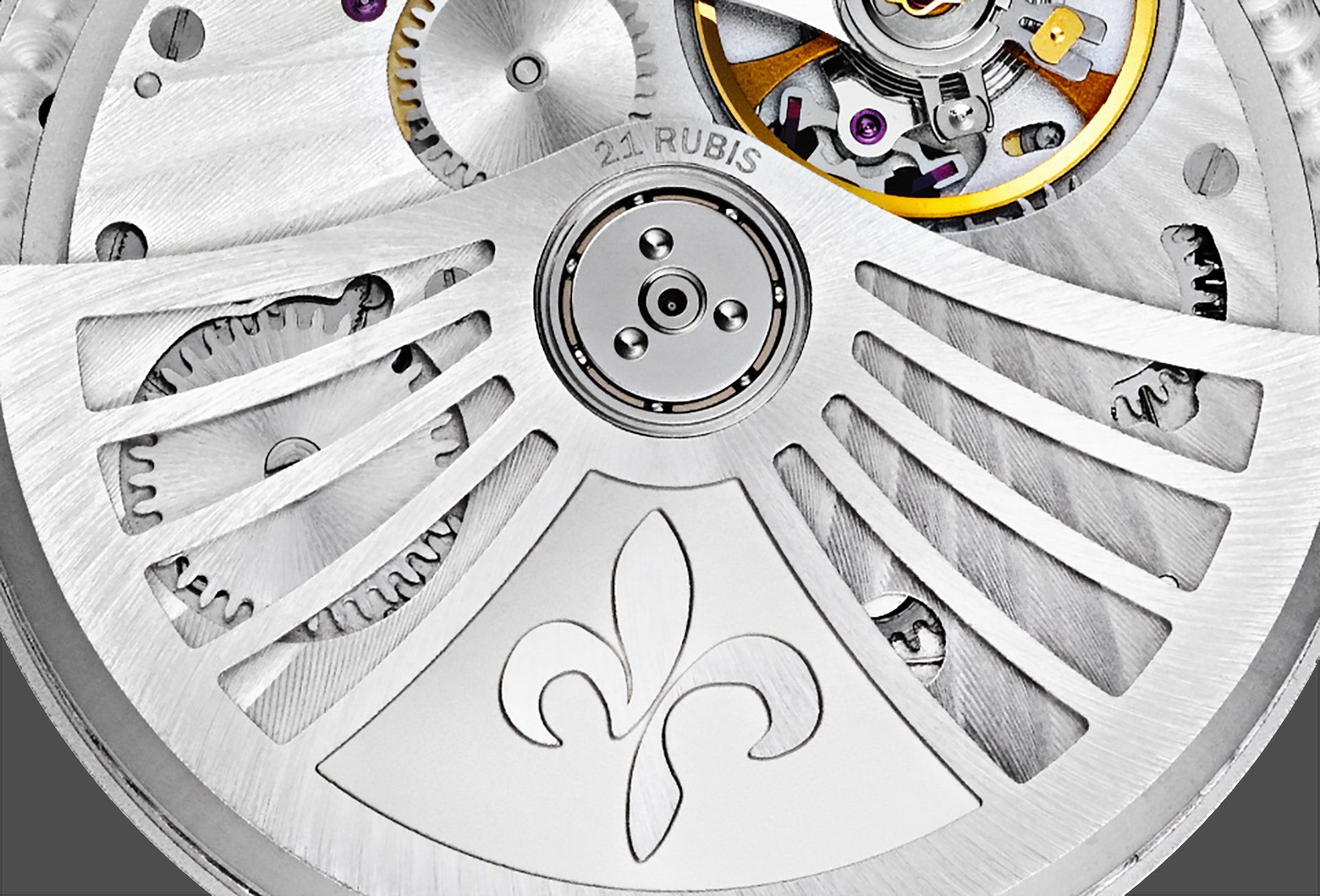Afin d’atteindre cet objectif, une finition à traits tirés (direction 1h30) a été choisie sur la platine versus un perlage dans les éditions précédentes. Les Côtes de Genève soleillées ont été conservées pour mettre en avant le compteur des petites secondes à 1h30, le point de fuite du cadran.
