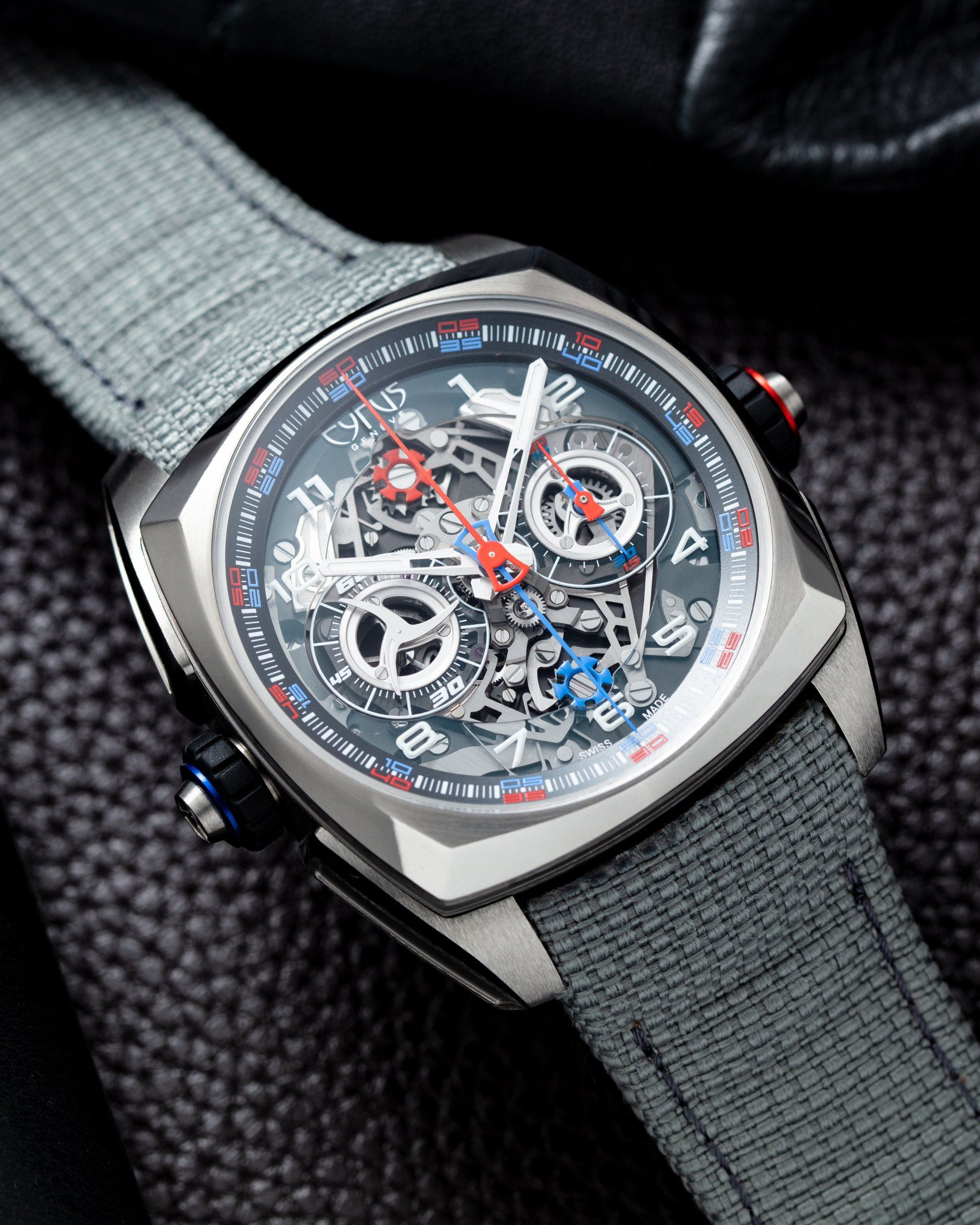 « Ce chronographe moderne est le résultat d’une longue réflexion sur le rôle du chronométrage dans les compétitions sportives. Dans de nombreux sports, il est souvent important de mesurer le temps écoulé avec deux temps de départ différents. Cela concerne, par exemple, les épreuves de sport comme les marathons ou les biathlons, où les athlètes ne franchissent pas la ligne de départ en même temps ou en Formule 1 - un monde très proche de CYRUS - où deux pilotes, lors des essais de course, ne partent en même temps. Ou encore dans les rallyes automobiles, il est commun d’utiliser deux chronographes indépendants. Le chronographe KLEPCYS DICE facilite cette opération grâce à ses deux couronnes monopoussoir, essentielles pour éviter toute manipulation non souhaitée ».