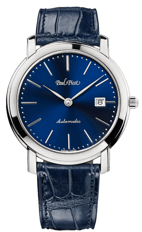 Calibre automatique. Bracelet alligator bleu, boucle déployante.