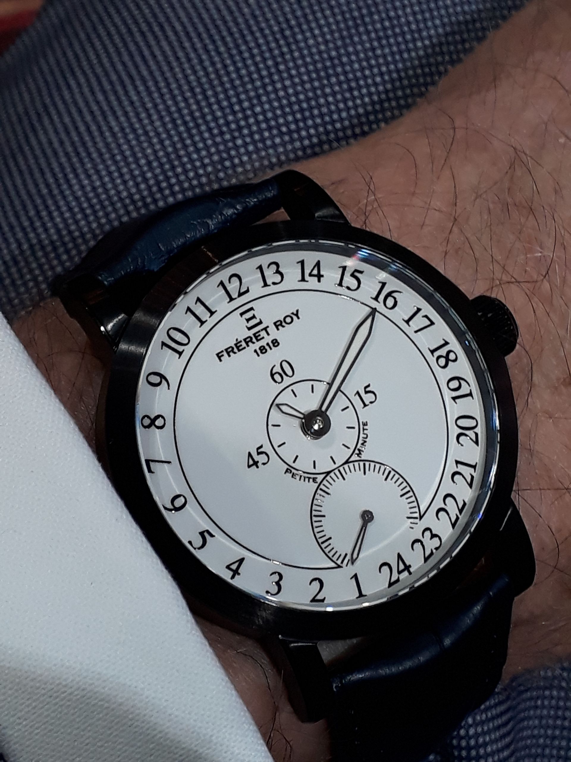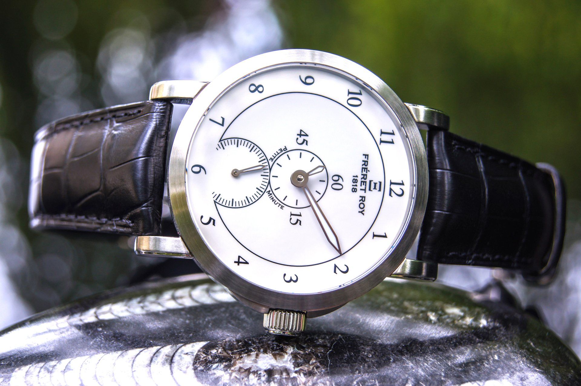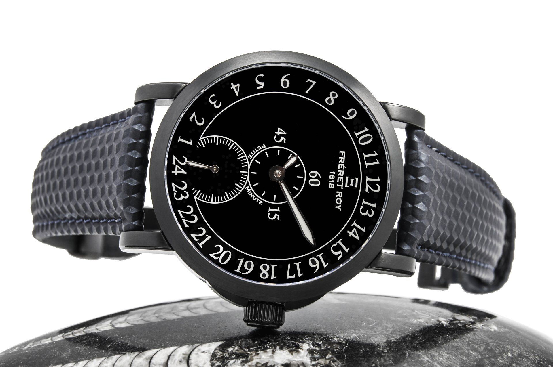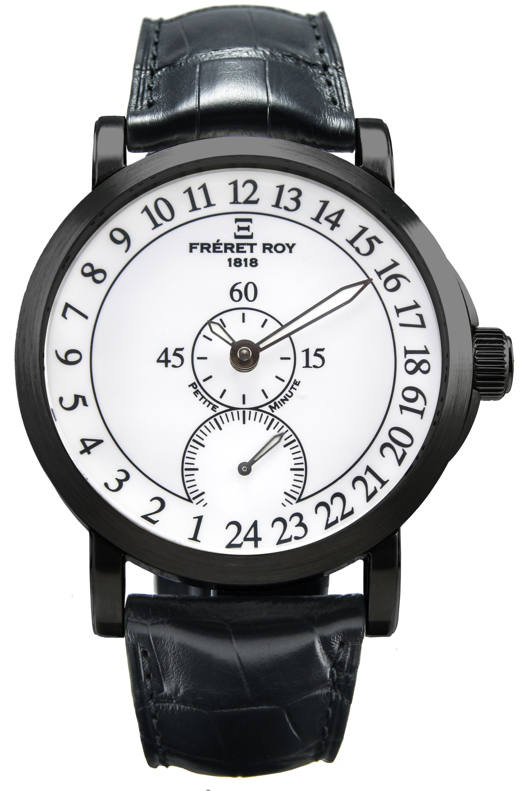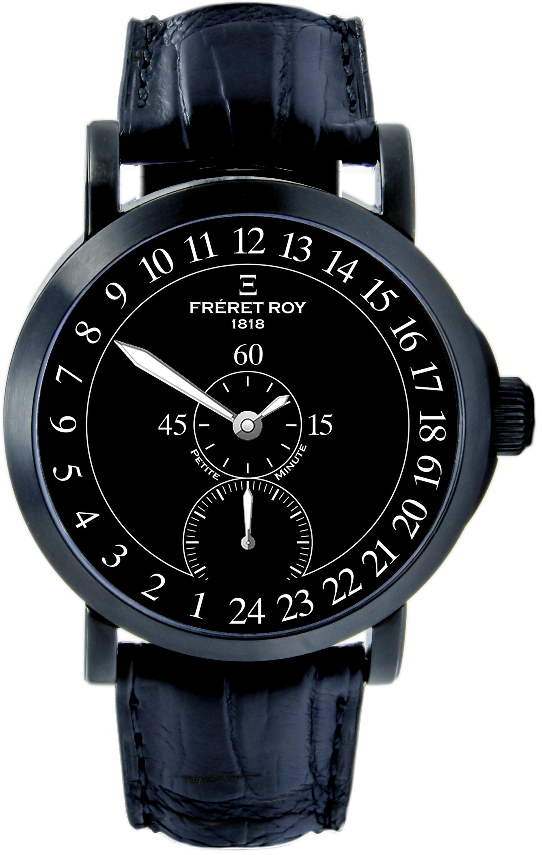 Le concept des montres "mono aiguille" m'intriguait mais ne me satisfaisait pas complètement pour les raisons évoquées ci-avant. C'est ainsi que j'ai eu l'idée et l'envie de produire une montre vraiment différente et dont l'affichage est une première mondiale et une exclusivité Fréret Roy 1818 ! Certains comparent également ces montres "Petite Minute®" avec les bien connus régulateurs ou l'heure est en haut, la minute au centre et la petite seconde en bas du cadran...