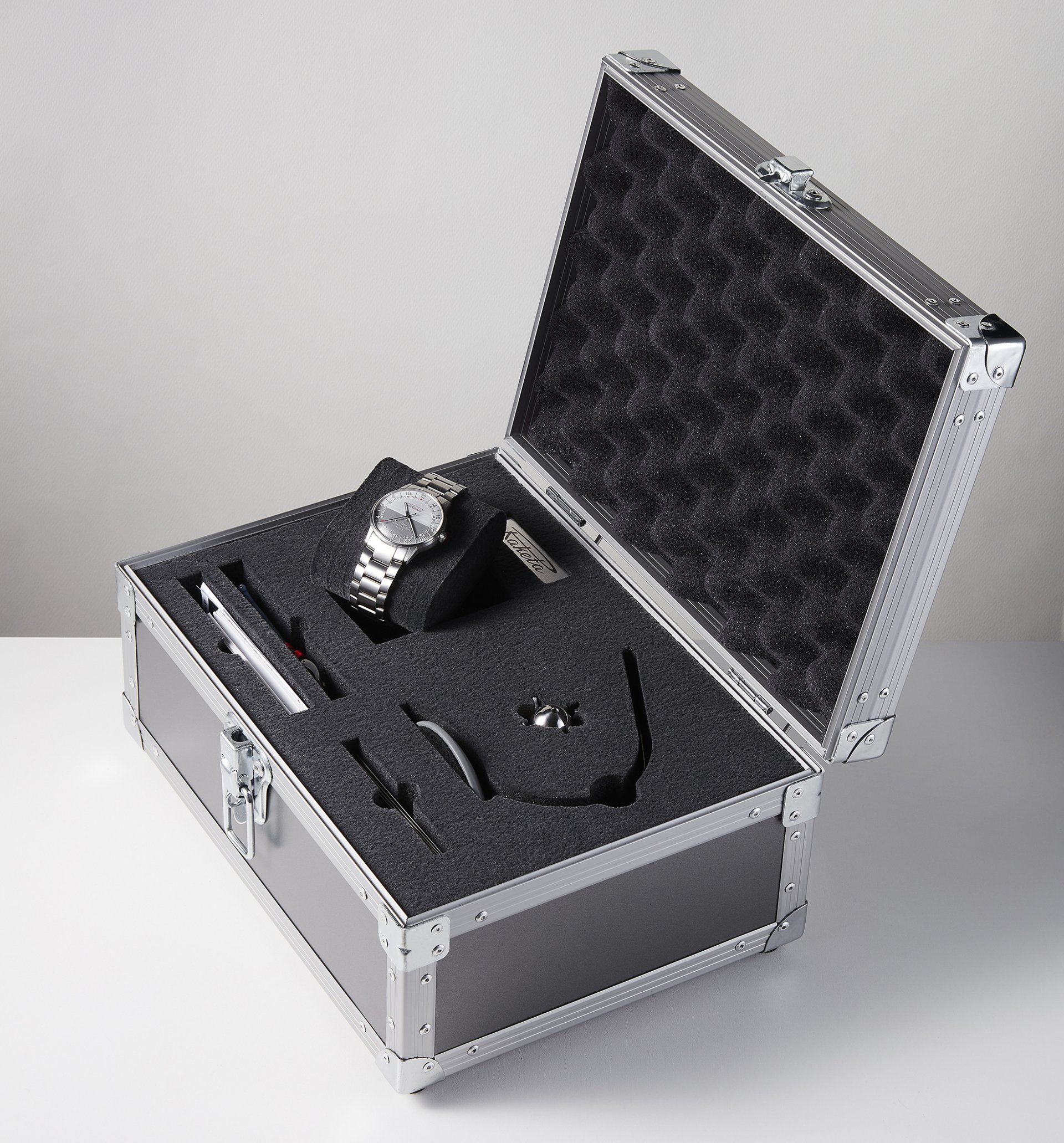 Un nouveau boîtier de 41,6 mm de diamètre et bracelet en acier ont spécialement été conçus pour ce modèle : leur design rugueux et viril correspond à l’esprit de l’Ekranoplan soviétique.