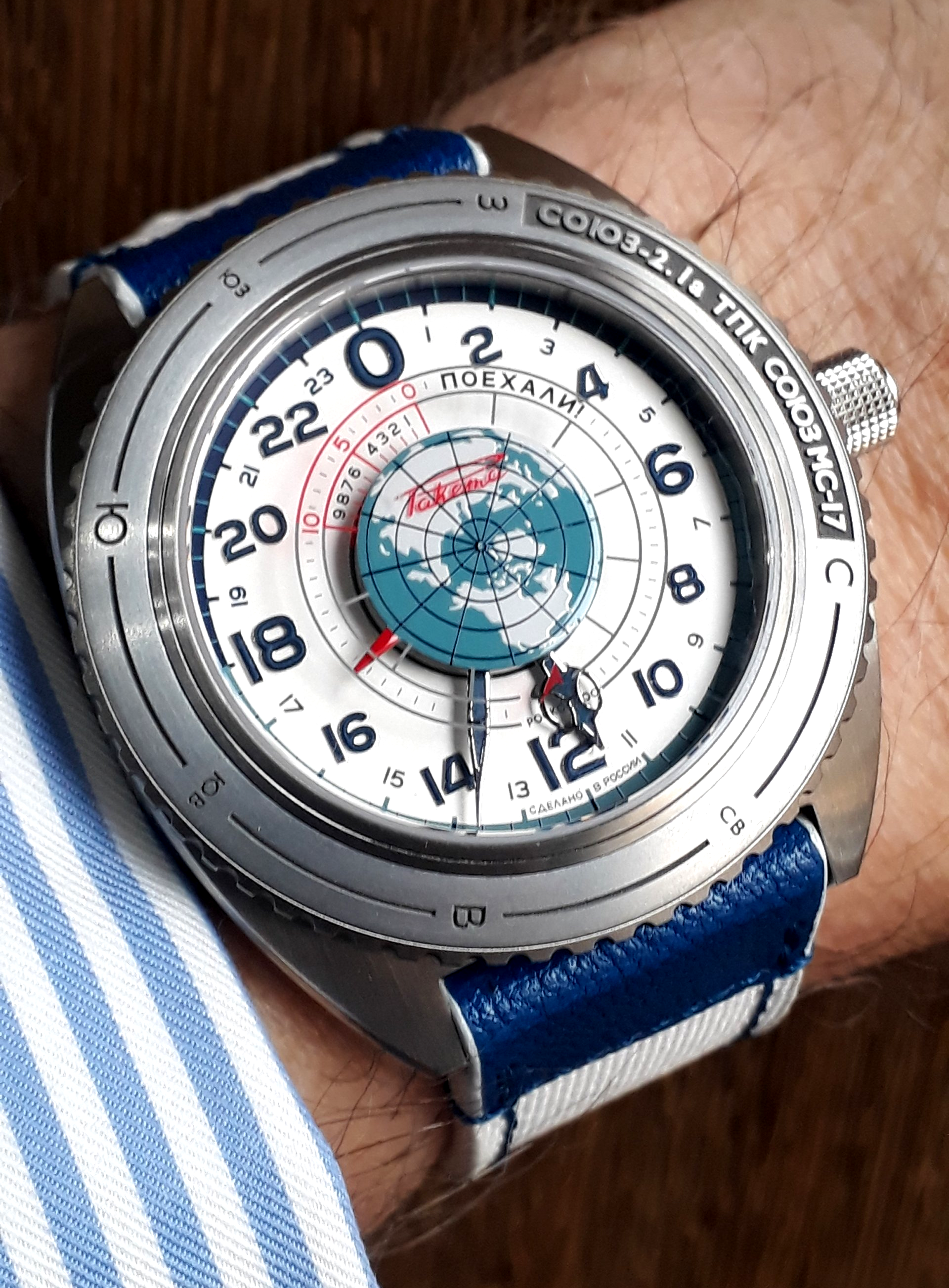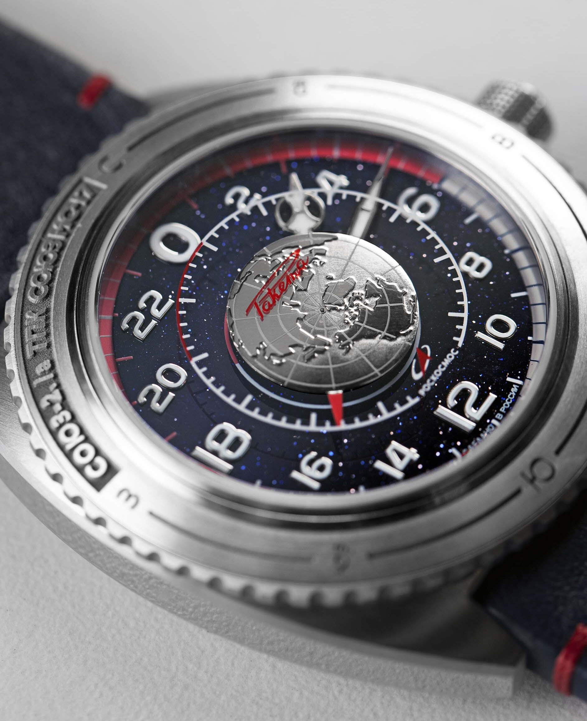 Le design de son cadran 24 heures est inspiré par l’esquisse de la montre soviétique « Sputnik » dessinée par la manufacture horlogère Raketa en 1974. Ce design de l'ère soviétique a été examiné et approuvé par le bureau d'études qui a conçu le véritable Sputnik-1 !