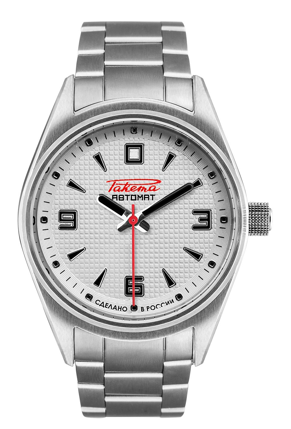 Boîtier 40,5mm en acier, fond transparent, verre saphir "dôme", calibre Avtomat 2624, bracelet acier.