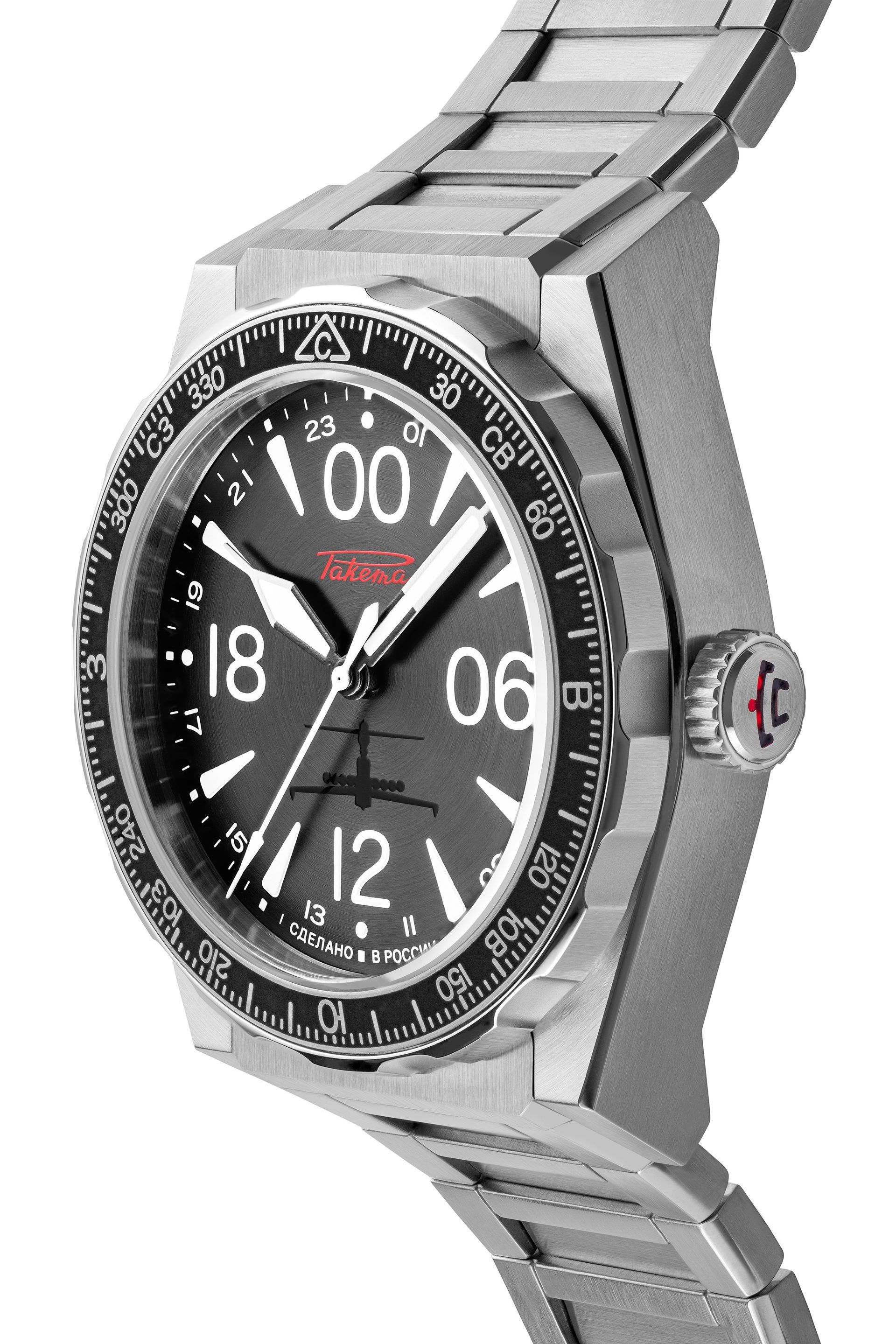 le design des signes de boussole sur la lunette est inspiré de la boussole du tableau de commande situé dans le cockpit de l'Ekranoplan ; - une image embossée de l’Ekranoplan est imprimée sur le cadran.